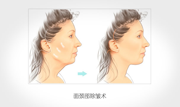 面部除皱术又称面部提紧术,是将面部松弛的皮肤向后向上提紧,切除多余的皮肤,同时将面部深部筋膜层也拉紧,切口隐蔽,效果显著。