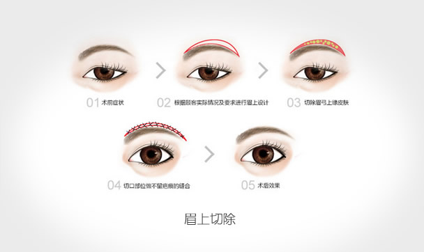 眉下切除:适合于纹眉位置过高或者上睑皮肤松弛者。 眉上切除:适合于上睑皮肤松弛及眉毛结构及形态正常,位置过低者。
