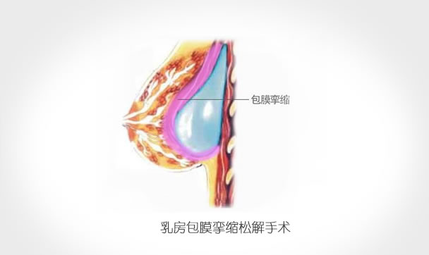乳房包膜挛缩松解手术从原切口进入,在接近假体时分离需小心谨慎,以免损伤假体,钝性分离假体周围的纤维组织包膜,将假体完整取出,分离内下方假体包膜并扩大分离范围,达胸大肌起点以下,分离彻底后将假体再次置入,术后加压包扎,避免血肿形成。矫正术易在本年内进行,半年后包膜较厚不易分离,增加了手术难度。