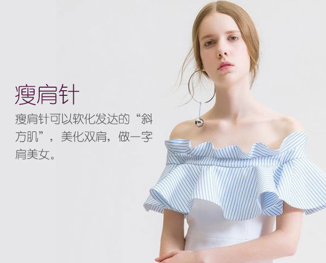 ②衣更有型:臃肿的肩部,让我们只能穿那种遮的严严实实的“老人衣”。因为缺少关注和锻炼,肩膀也是容易堆积脂肪的地方。穿什么衣服都显得脖子短,上身肥,瘦肩针让你基本没有惧衣形,穿什么都有型。